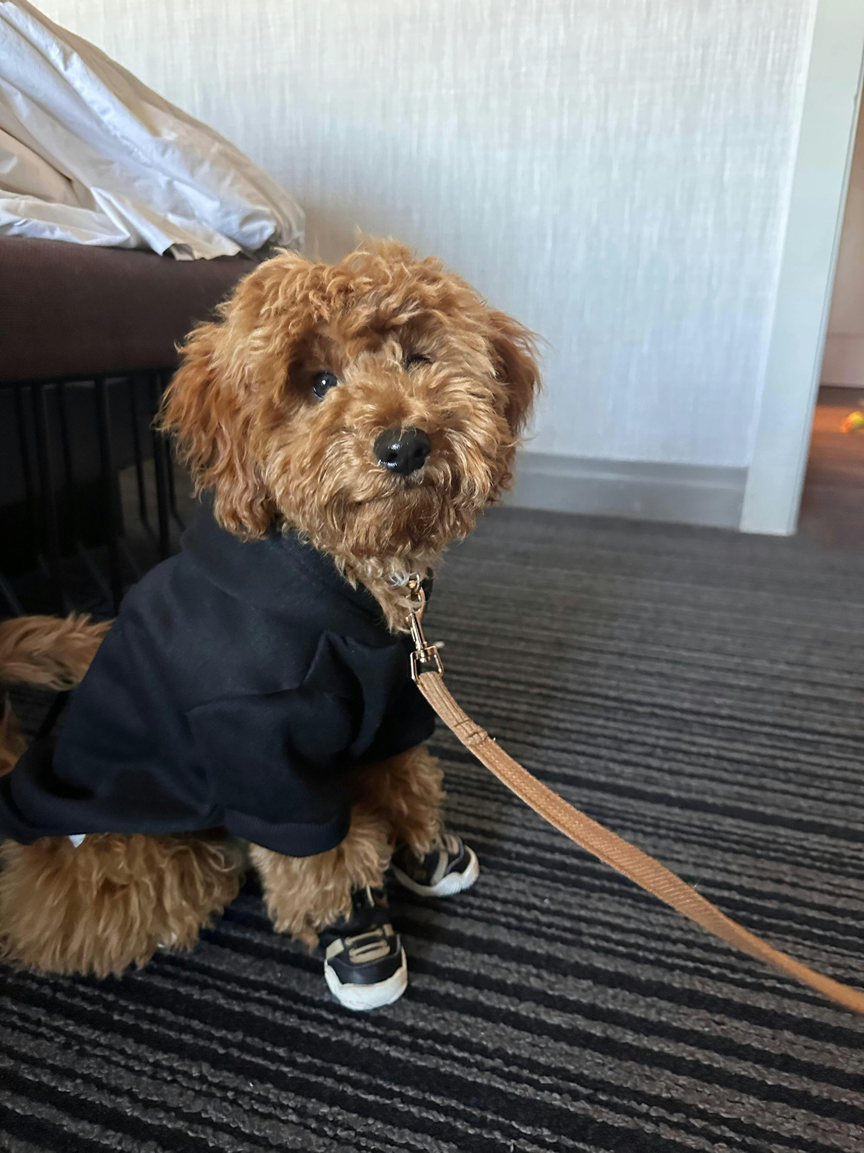 Rusty, miniature poodle, accepted wearing these sneakers immediately without and issues- adorable- and practical for hot pavement on walks