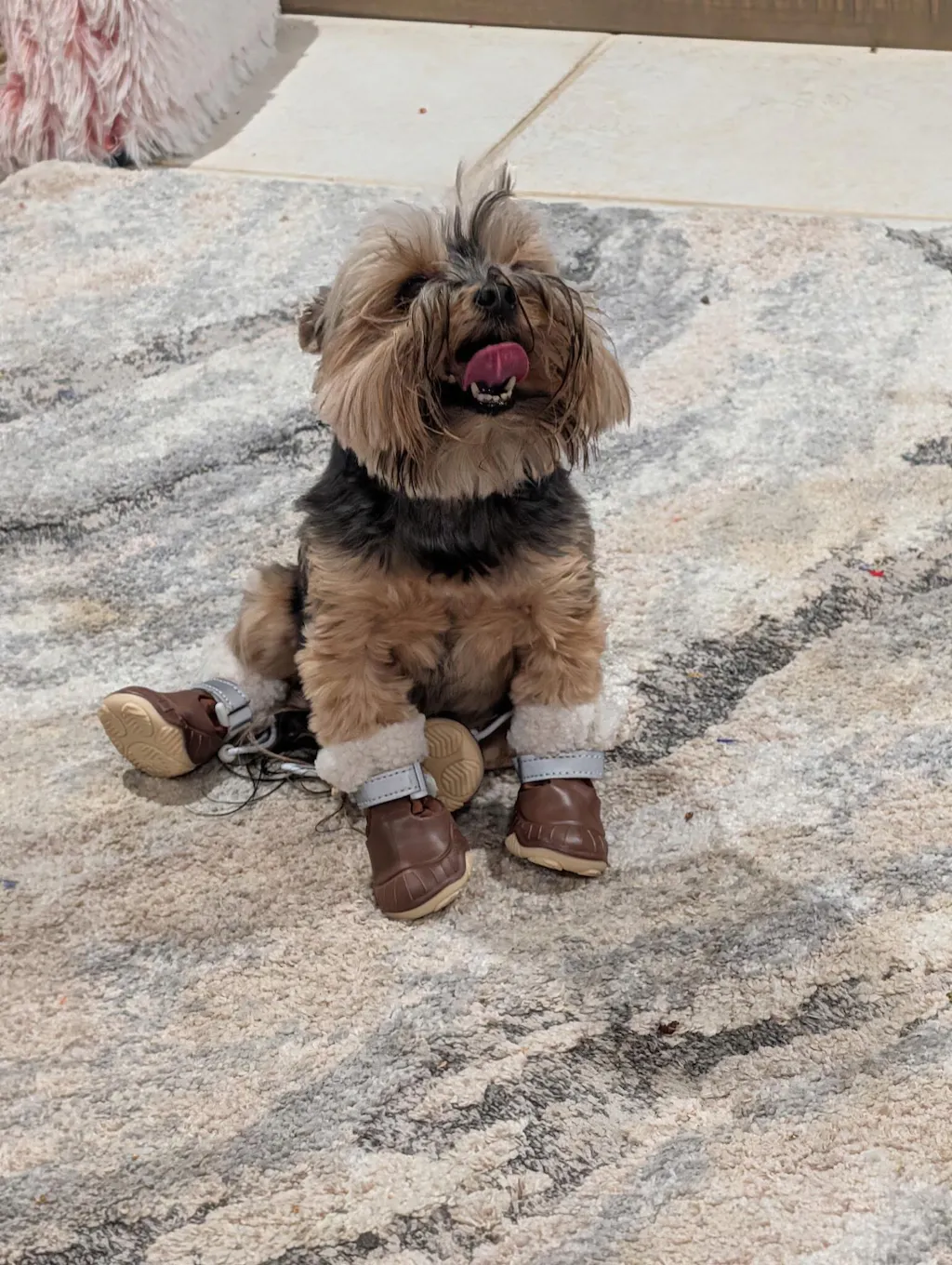 Got the XXXS for my yorkie, first shoes that actually fit her! We practiced a bit inside before she was comfortable walking out in the snow, but it has been a game changer with all the snow storms this year!